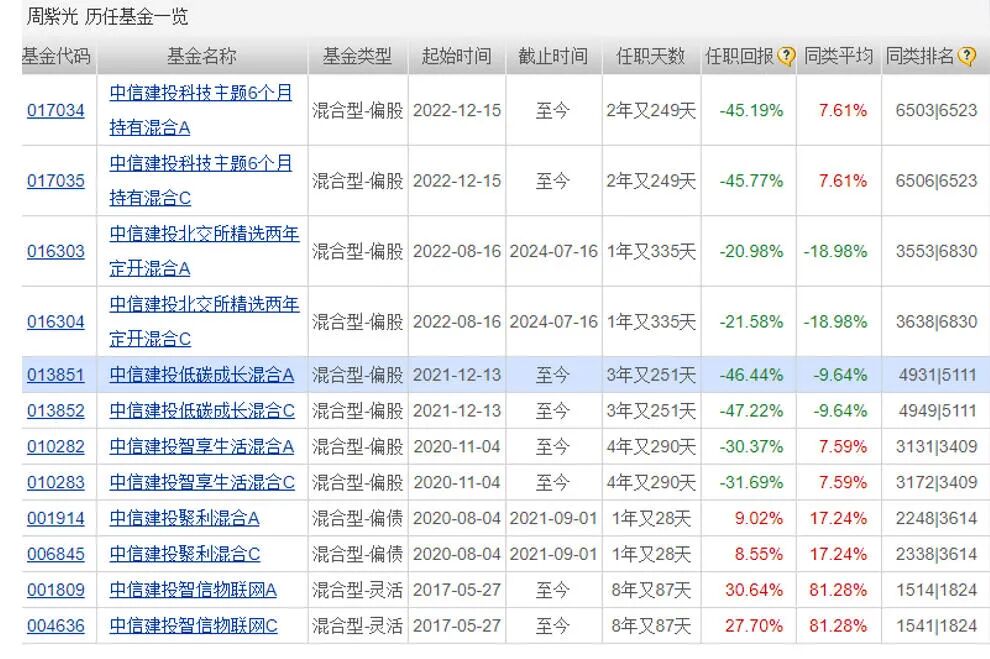 天天基金网汇总的数据显示:截至2025年8月19日,周紫光管理的多只基金在任期内均出现了显著亏损,比如科技主题6个月持有基金、低碳成长混合基金、智享生活混合基金,均是动辄几十个点浮亏的任职回报。