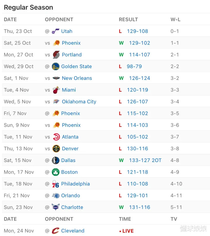 快船本赛季打到现在,也就1次连胜(2连胜),战绩表看起来那是真的惨啊。