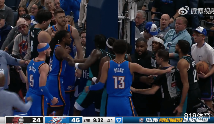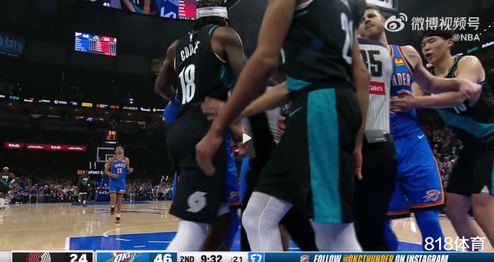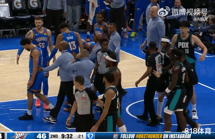 而其他开拓者球员和裁判长也冲上来力阻双方近距离接触,在杨瀚森和裁判们的努力之下,这次冲突并未扩大。