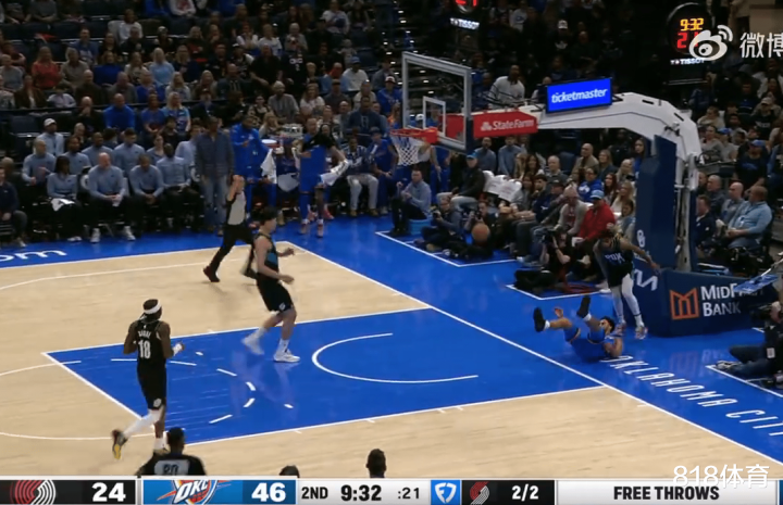 比赛第二节,雷霆46-24领先22分,米切尔上篮,吕佩尔在身后腾空而起,对米切尔犯规,导致他摔倒在地。
